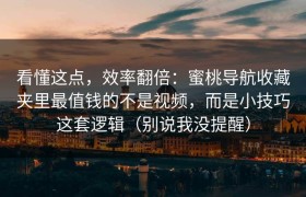 看懂这点,效率翻倍:蜜桃导航收藏夹里最值钱的不是视频,而是小技巧这套逻辑(别说我没提醒) 很多人把蜜...