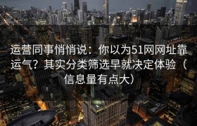 运营同事悄悄说:你以为51网网址靠运气?其实分类筛选早就决定体验(信息量有点大) 别再把用户能不能快...