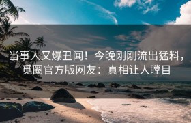 当事人又爆丑闻!今晚刚刚流出猛料,觅圈官方版网友:真相让人瞠目