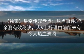【独家】星空传媒盘点:热点事件5条亲测有效秘诀,大V上榜理由前所未有令人热血沸腾 在当今信息爆炸的时...