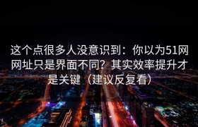 这个点很多人没意识到:你以为51网网址只是界面不同?其实效率提升才是关键(建议反复看) 引言...