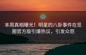 本周,娱乐圈再掀波澜,一场关于明星的八卦事件通过觅圈官方版的曝光,引发了大量网友的强烈反应。这一事件...