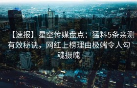 【速报】星空传媒盘点:猛料5条亲测有效秘诀,网红上榜理由极端令人勾魂摄魄 在当今数字娱乐时代,网红已...