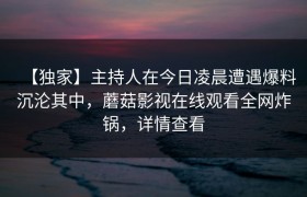 【独家】主持人在今日凌晨遭遇爆料沉沦其中,蘑菇影视在线观看全网炸锅,详情查看