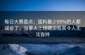 每日大赛盘点:猛料最少99%的人都误会了,当事人上榜理由极其令人无法自持